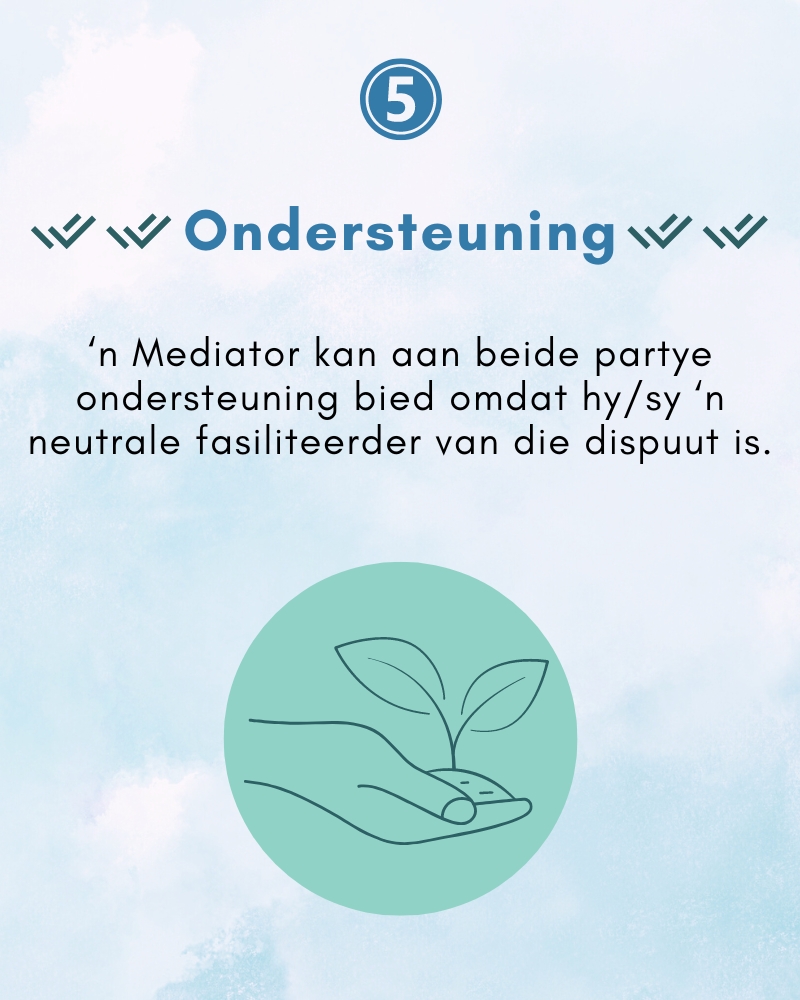 ‘n Mediator is dus ‘n neutrale persoon wat in die beste belang van alle partye probeer optree.